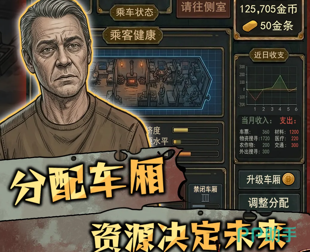 末日废土之上,人类文明濒临崩塌,而一列永不熄火的钢铁列车正成为最后的希望。玩家将化身列车运营核心成员,肩负起调度、检疫、扩建与生存决策等多重职责,打造可移动的末日方舟。游戏玩法突破传统生存框架,不依赖无尽跑图或硬核建造,而是聚焦于人员筛查、资源统筹与车厢升级等策略性经营环节,让每一次登车请求都成为关乎存亡的关键抉择。