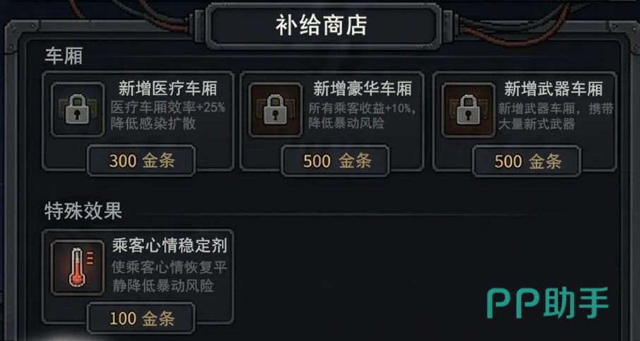 在玩法设计上,游戏强调系统性管理逻辑:每位抵达站点的求生者都需经过健康状态审核;感染者必须拦截,健康者方可登车。随着幸存者数量增长,玩家需持续拓展车厢功能模块,包括医疗舱、物资仓、动力核心等,并合理分配有限资源,平衡短期需求与长期发展。