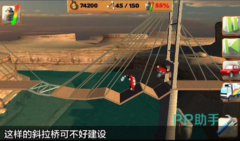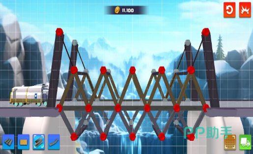 玩家将扮演一位搭桥专家,玩家需亲手搭建桥梁,并确保其能顺畅通行车辆,这一过程既紧张又充满乐趣。游戏提供了多样的材料供玩家用来建造桥梁,每一关卡都设定了预算限制。玩家不仅要克服搭桥本身的挑战,还要随时应对随机出现的障碍物,这对玩家的反应速度是一大考验。游戏的画面制作精良,卡通风格的场景为玩家带来了极致的视觉享受。