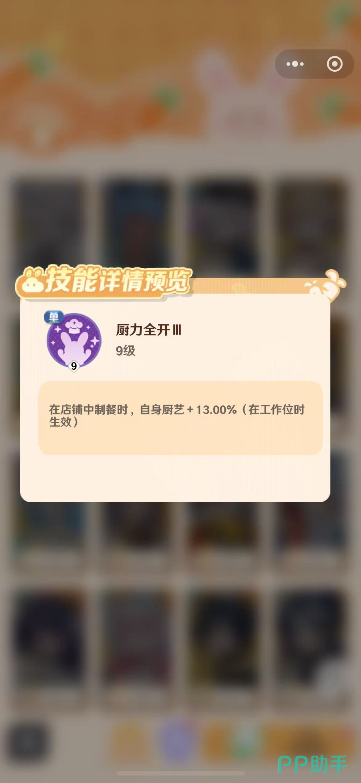每当完成美食制作,虎粕的厨艺值将提升13%,成长曲线稳定且可观。他拥有两项团队增益技能:一是“厨艺共鸣”,可在经营期间使全体成员厨艺属性提高3%;二是“厨艺交响”,直接为所有店员增加150点厨艺值。即使店内入座率达到80%,他仍能以400%的移速高效处理订单,展现出极强的抗压能力。此外,他还积极参与美食仙人的修行,有6.5%概率获得稀有食谱秘料,助力研发新菜品,丰富菜单选择,吸引更多顾客光临。