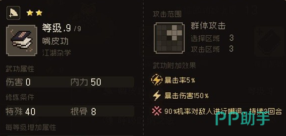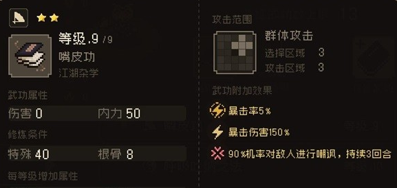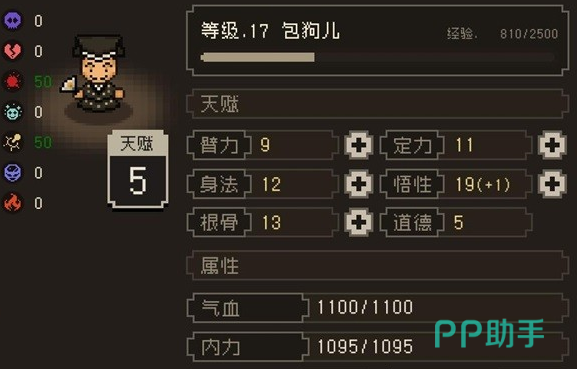包狗儿可以根据奇门高的特点来学习奇门遁甲,学会后奇门点数可以到达120点以上,基本上中后期碰到的谜题机关都能轻松解开,在探索中是个不错的辅助角色。而悟性高的特点,可以用来学习儒家系的功法,增强自我恢复能力和部分抗性,而且血量的上限也会相应提升不少,这样后期能够减少被秒的风险。但是由于他本身是个江湖浪荡子,所以定力上是比较低的,需要提升定力属性来防止他在战斗中乱跑。