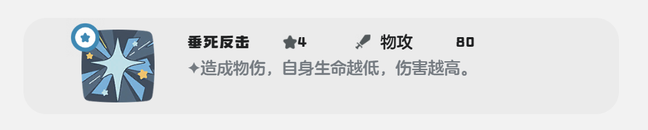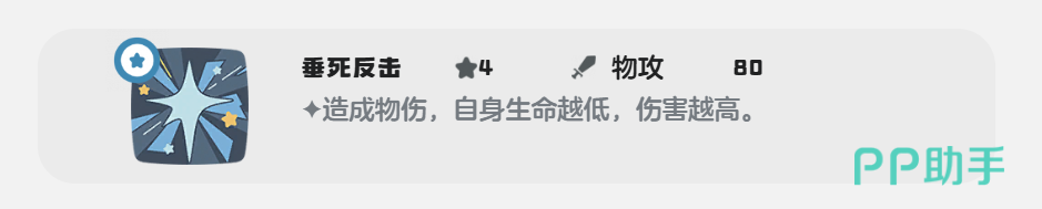 反击型路线性格要选择急躁,这个性格也是用来提升速度的,但是我们在配技能时需要打反击,技能选择的可以选择垂死挣扎+反击+后发制人+见招拆招,这一套技能搭配中垂死挣扎技能需要最后使用,这个技能受到我们自身血量的影响,血量越低伤害就越高。