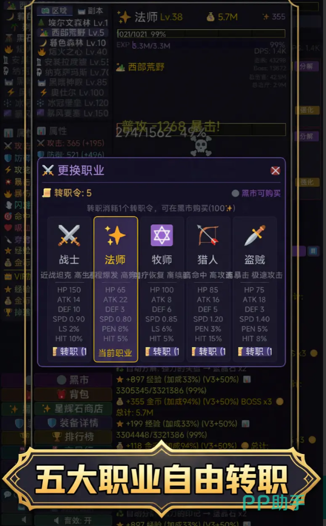 职业系统采用模块化设计,首发开放战士、法师、牧师、猎人、盗贼五大基础定位。各职业具备明确职能边界:战士专注物理抗伤与单体压制;法师侧重元素属性克制与AOE范围爆发;牧师承担团队续航与状态干预;猎人依赖远程持续输出与机动拉扯;盗贼则以高暴击率、闪避加成及瞬发技能组合实现短时极限斩杀。所有职业支持无限次转职路径拓展,并可通过装备词条嵌套、属性点自由分配等方式,实现千人千面的角色定制化成长。