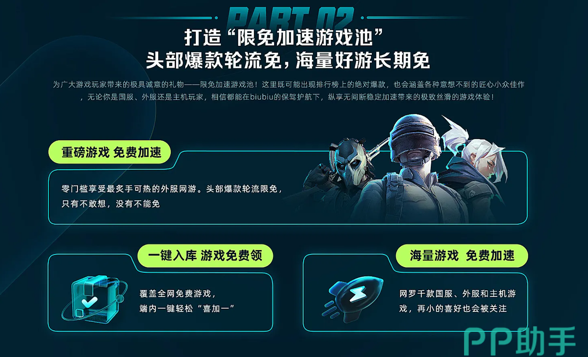 玩大型游戏,设备性能和网络状况十分重要。如果设备配置不足,游戏容易出现卡顿、掉帧;网络不佳,更是会导致操作延迟、频繁掉线,严重影响游戏体验。但大家完全不用担心,biubiu加速器能帮你解决网络难题。只要下载biubiu加速器,新用户首次登录即可领取3小时免费加速时长,让你先体验流畅网络带来的快乐。而且,只要输入【biubiu不卡顿】,还能额外领取三天会员,享受更稳定更高速的网络,尽情享受游戏的每一刻。