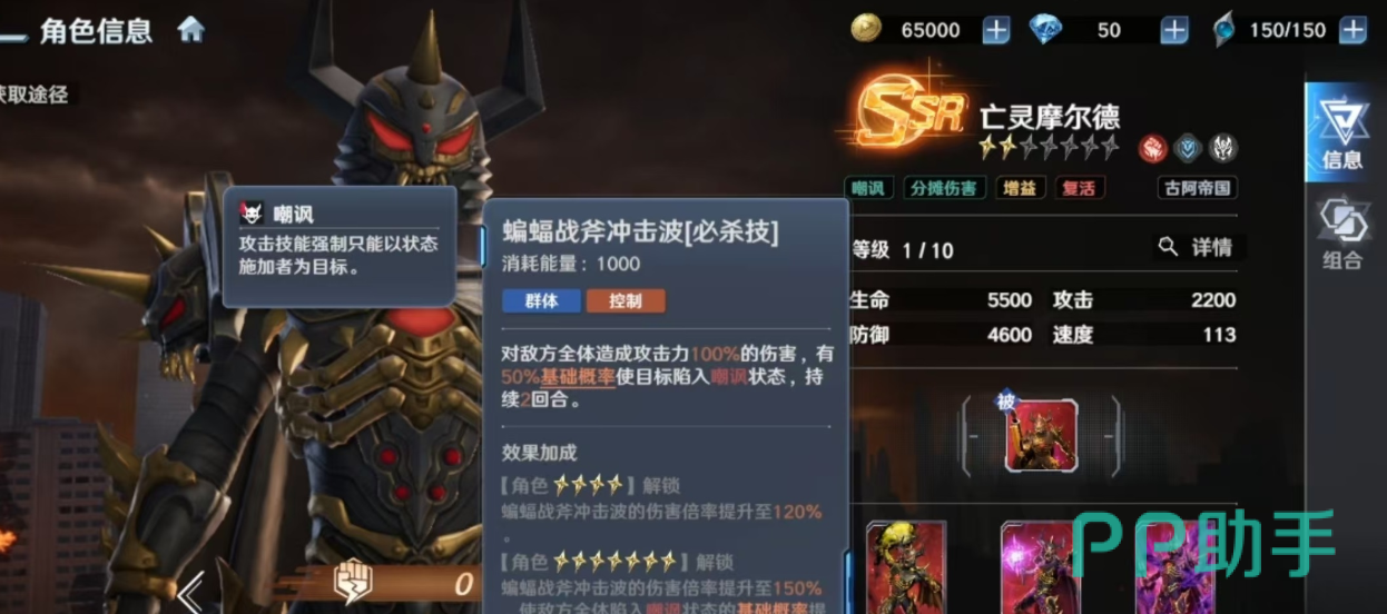 摩尔德的核心战力模型,建立在强制嘲讽与被动“卷土重来”的双重保障之上。其必杀技“蝙蝠战斧冲击波”兼具大范围伤害与概率转向控制效果,可有效引导敌方火力集中于自身,为后排输出单位争取安全输出窗口。配合“暗黑恩赐”赋予的伤害链接状态,该角色在古阿帝国阵营内形成了不可替代的承伤—控场—反打闭环,显著提升整支队伍的容错率与持续作战能力。