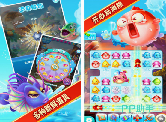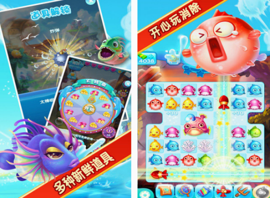 在这款以小于展开消除的游戏中,你可看到特别多可爱风格,又比较精美的鱼类,也是经过精心设计的,无论是清新可爱的画面,还是精美的地图等玩法内容,你都能在这里面挑战数百个关卡。还有超多新鲜的道具玩家,只需要点击相同的鱼类,就可以开心玩消除。也能在玩的过程中,使用丰厚的道具,享受华丽的特效。