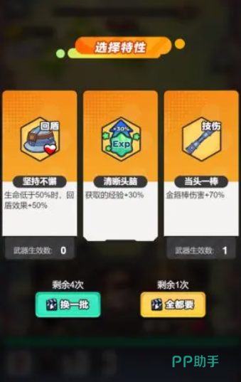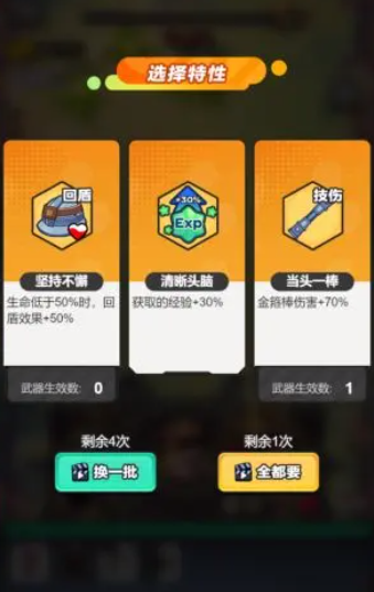 初始状态下玩家的背包中只有9个格子,需要合理选择武器,并且把这些武器排布在格子中,每进行一轮对战,如果能赢得胜利,就能扩充背包里的格子数量,对战过程中,使用的都是背包里的这些道具,每一次攻击僵尸,蓝条的进度都会不断提升,等蓝条加满之后,就可以额外选择一个特性,利用这个特性能让玩家有更优秀的表现。