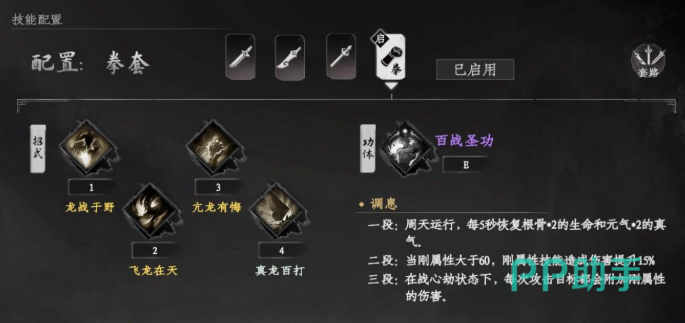 内功的选择直接影响降龙流派的上限表现,建议优先构建三套核心组合以应对不同战斗场景。主流输出配置推荐使用龙象般若掌 + 百战圣功,此组合可提升15%外功伤害,显著增强主力技能的杀伤力。百战圣功额外提供8%防御与10%攻击力加成,全面提升生存与输出能力,非常适合日常任务与副本挑战。另一种高爆发路线则采用龙象般若掌 + 天魔大法,大幅提升暴击率,在配合技能无敌帧的情况下,可在短时间内倾泻巨额伤害,实现瞬间秒杀。