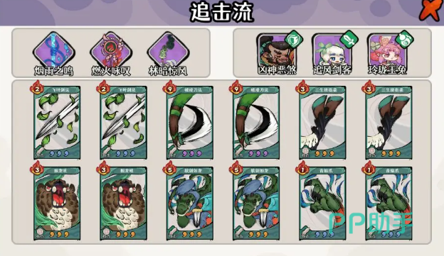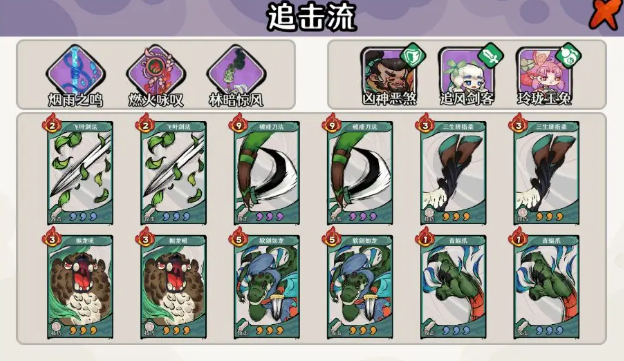 该流派核心在于建立不间断的攻击链,通过低费高频外功技能实现持续压制。追风剑客作为主C,每回合可稳定触发多次普攻与技能联动,输出频率显著高于常规角色;凶神恶煞承担前排抗压职能,其被动提供的额外护甲有效提升团队容错率,为玲珑玉兔创造安全的抽牌环境;玲珑玉兔则负责维持卡组运转,通过主动技能增加抽牌次数与手牌回路,确保追击节奏不中断。整套配置无复杂资源依赖,新手可在前3回合内快速成型并掌控对局主动权。
