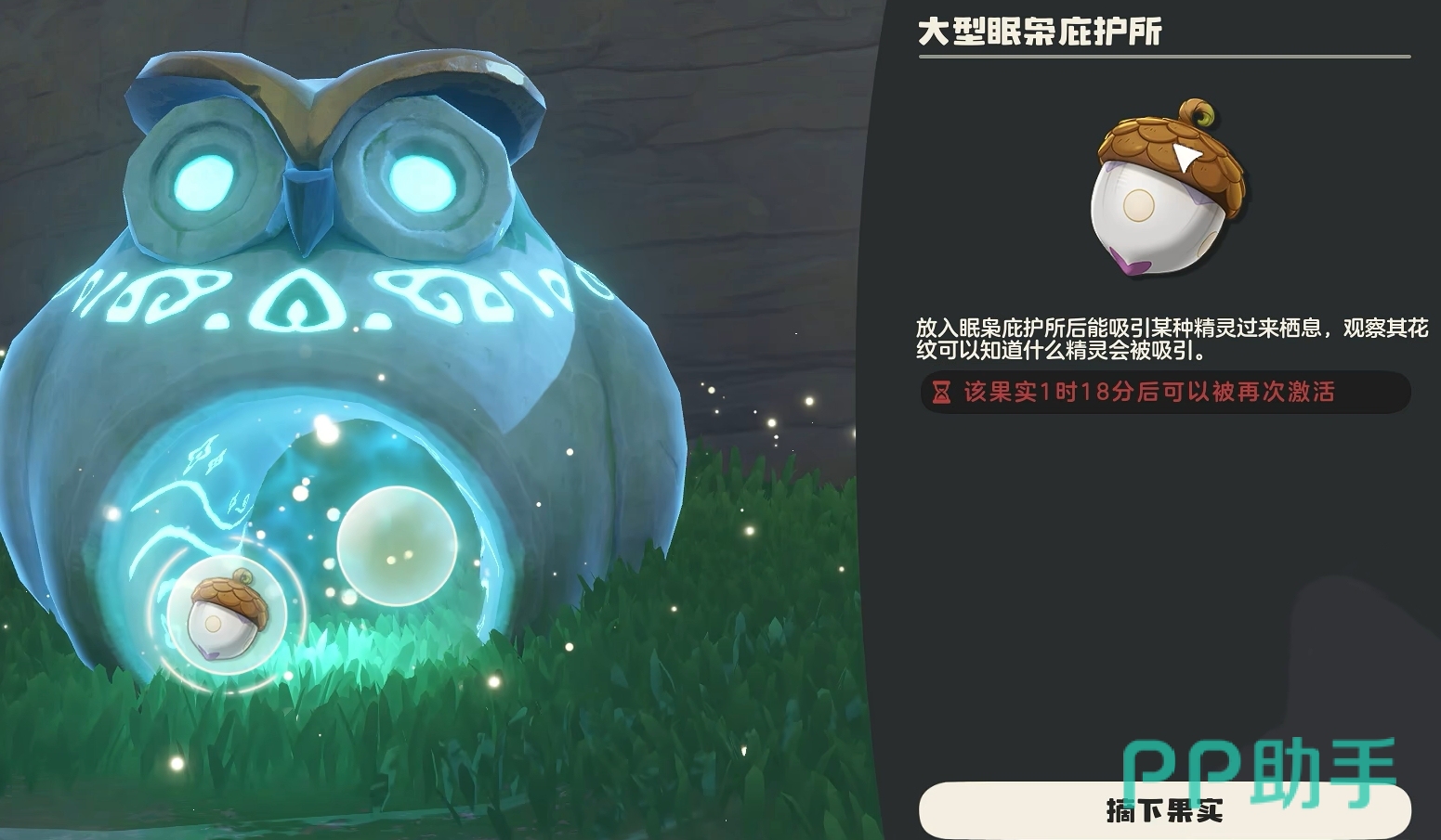 该挑战没有尝试次数限制,但存在时间窗口,需在倒计时结束前完成。成功捕获卡洛儿并将其存入仓库后,游戏将自动赠送一个特殊道具——可召唤甜田螺的精灵果实。接下来,前往靠近水域的大型眠枭庇护所,将果实放置其中。等待一段时间后,甜田螺就会出现在附近的水体区域,此时即可进行捕捉。