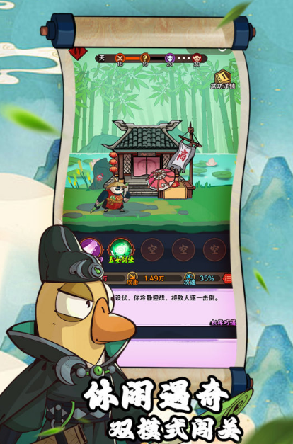 这款以武侠江湖为主题的手游,玩家和其余角色都化身动物形象,在高度拟人化的文字剧情中享受探索生涯。系统设置了极度休闲与丝滑的肉鸽机制,玩家们可不断收集与领悟绝世武学,通过江湖奇遇享受一战成名的威武。本手游以闯关方式解锁动物英雄,想获取更多资源也可在大型争霸副本里过关斩将,体验成为江湖霸主的豪气。