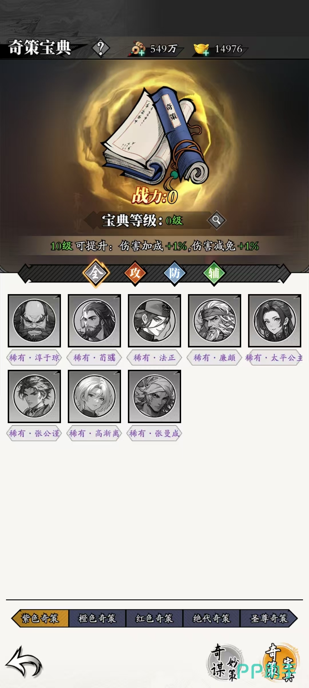 游戏中所有豪杰按定位划分为输出型、辅助型与控制型三类,奇策也遵循相同分类逻辑进行匹配。以孙悟空、吕布为代表的输出型角色,应优先选择提升伤害输出、暴击概率的奇策类型,同时兼顾怒气积攒效率或普攻强化效果。推荐配置如绝代屠戮、传说秦始皇等奇策,能显著增强爆发能力,助力战场迅速建立优势。