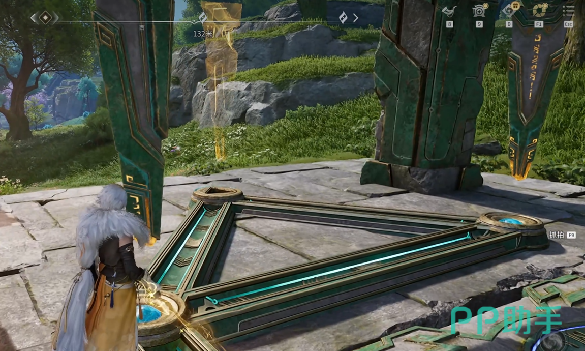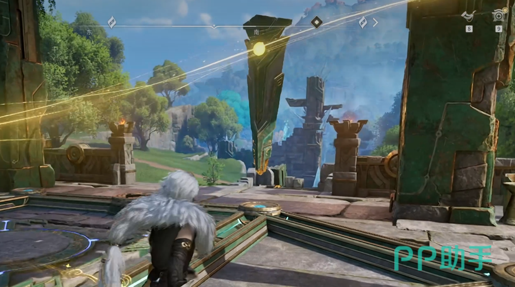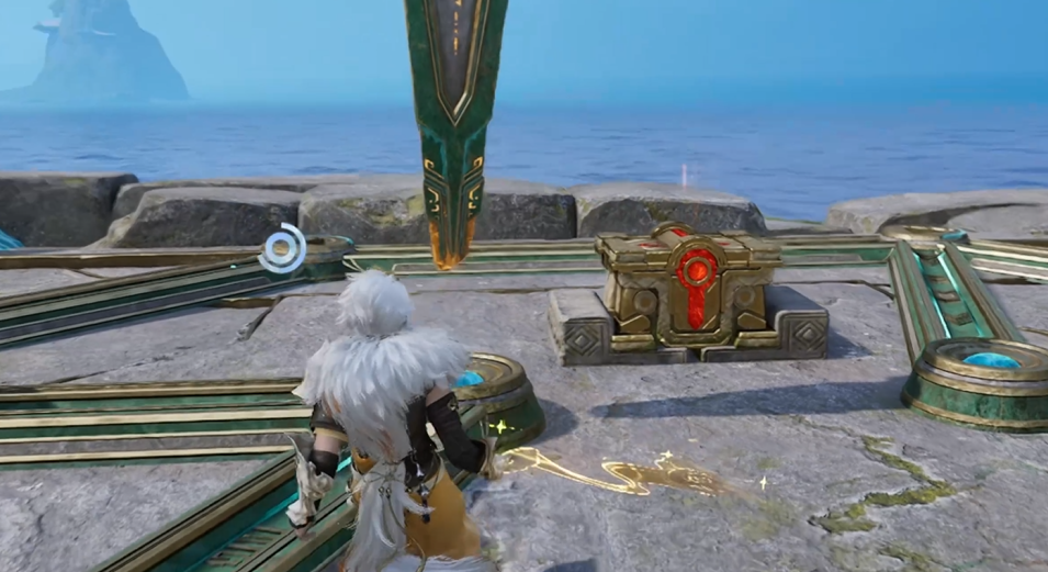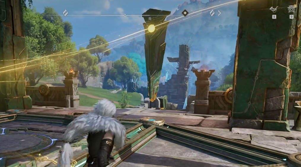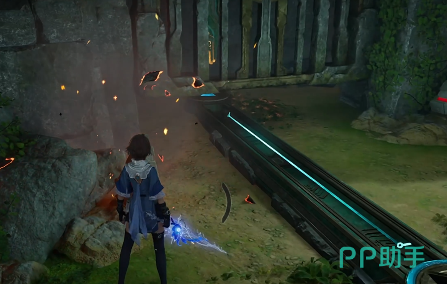 左侧门机关隐匿于门前灌木丛下,清理植被后即可触发;右侧门机关则被碎石覆盖,需击碎障碍物显露开关。值得注意的是,两扇门开启后均附带额外收益:左门内藏有可拾取宝箱,右门内设有环金资源点。建议优先完成资源收集,再集中处理石柱归位。最终摆放顺序为:右侧石柱置于中央位,中间石柱移至右侧位,左侧石柱保持原左位——此排列满足全部激光交汇条件,宝箱随即开启。