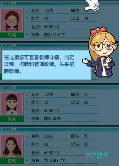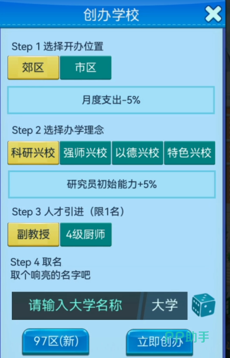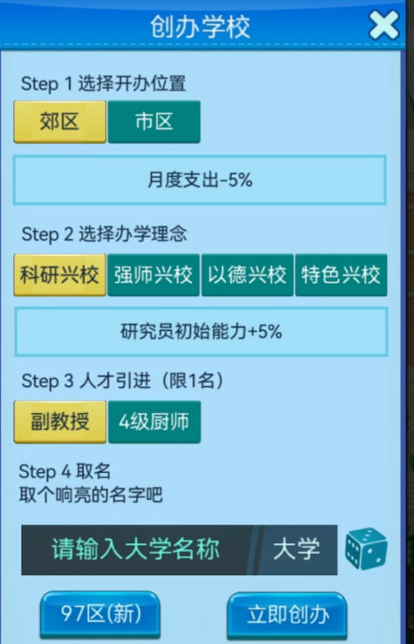 开局阶段需完成院校基础设定,包括选址定位、办学方向(如综合型/理工型/人文型)、初期人才引进规模等关键选项。确认后进入引导流程,系统将通过教学任务逐步演示课程开设、教室分配、教师聘任、学生录取等基础操作,确保玩家掌握底层运行逻辑。