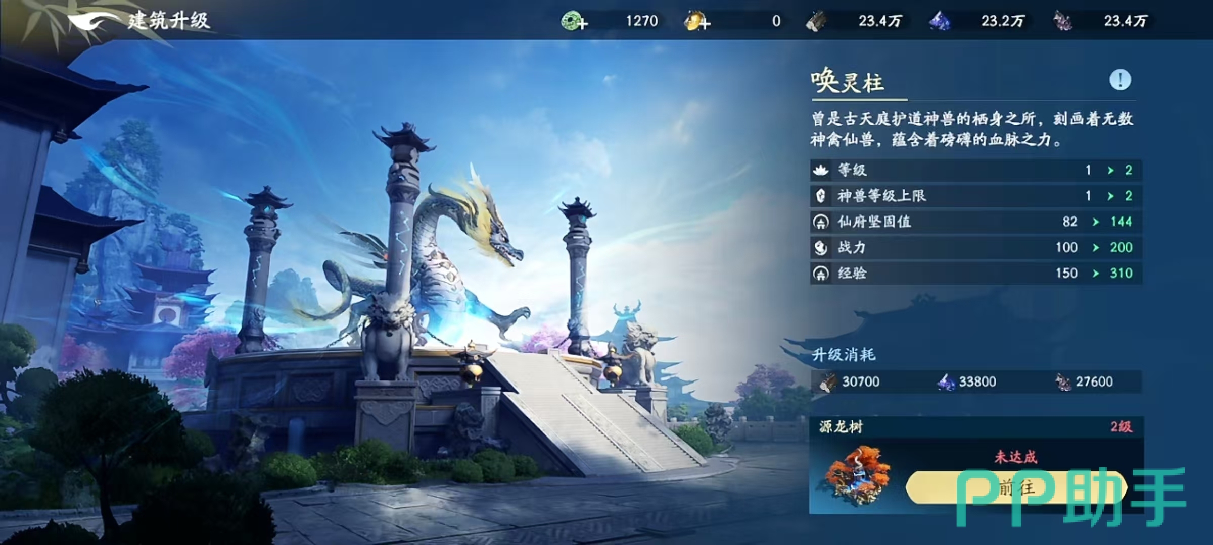 仙府内设有多种功能性建筑,主要包括主殿、五色祭坛、荒古神像、唤灵柱、炼器坊与化龙池等,每一座建筑都具备独特用途。主殿为仙府的核心枢纽,所有其他建筑的升级均需依赖主殿等级的提升。同时,主殿还能显著增强仙府坚固值,带来战力加成和经验收益,是优先发展的重点。其次是唤灵柱,当玩家在大世界遭遇敌方攻击时,可借助唤灵柱召唤出强力神兽进行防御。随着唤灵柱等级提高,神兽的等级上限也会随之扩展,进一步强化战斗能力。例如,召唤出的蛮龙神兽可在目标区域发动三次连续打击,对多个敌方单位造成可观的物理伤害。需要注意的是,唤灵柱的升级前提为源龙树达到指定等级。