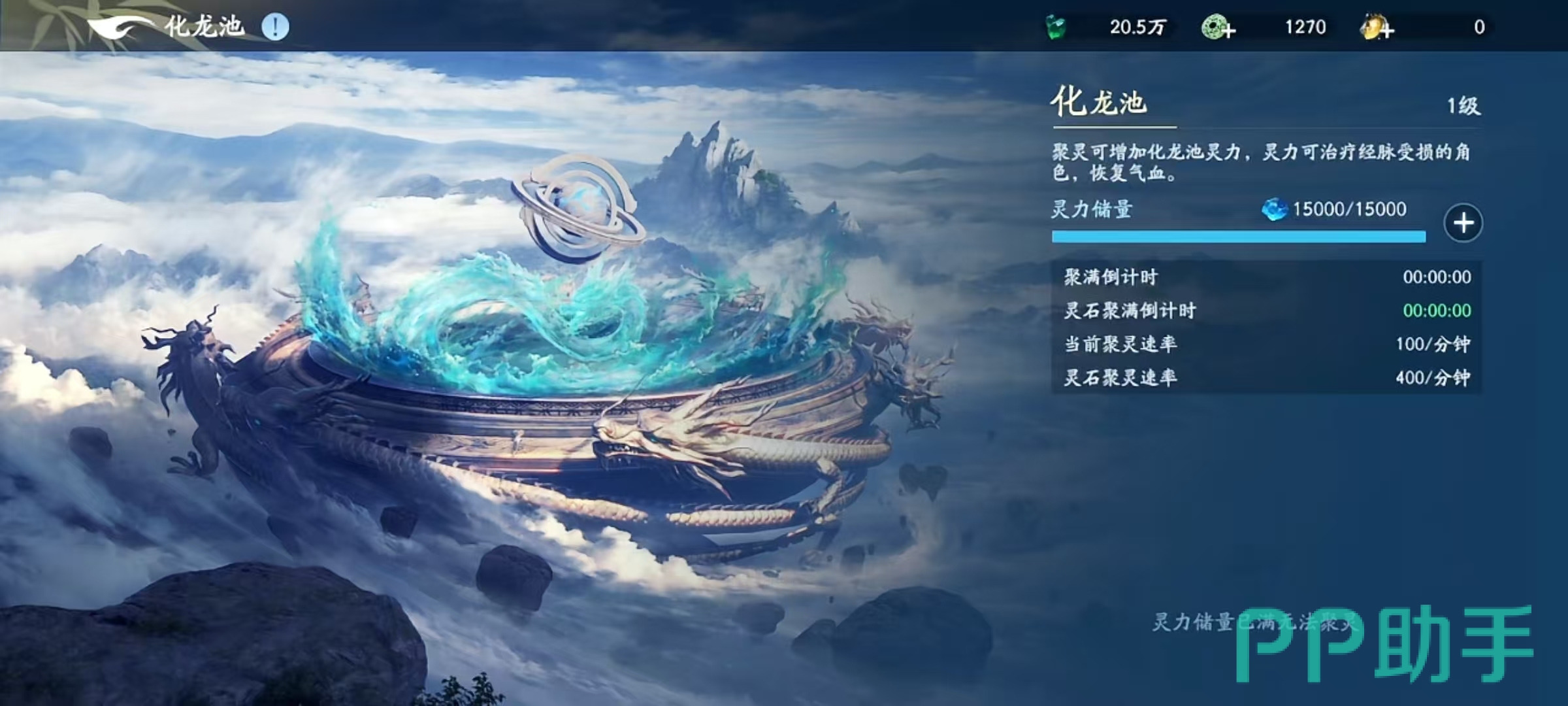 化龙池主要用于修复角色经脉损伤,恢复气血状态。其内置灵力储量随等级提升而扩大,可通过消耗灵石加快聚灵速度,实现灵力快速积累。此外,也可直接使用特定道具在化龙池中获取灵力,提升恢复效率。除了上述功能型建筑外,仙府还包含三类资源生产建筑:源龙树、落星台与玄磁山,分别产出源龙木、星河沙和玄磁晶,这三种资源是升级其余建筑不可或缺的基础材料。