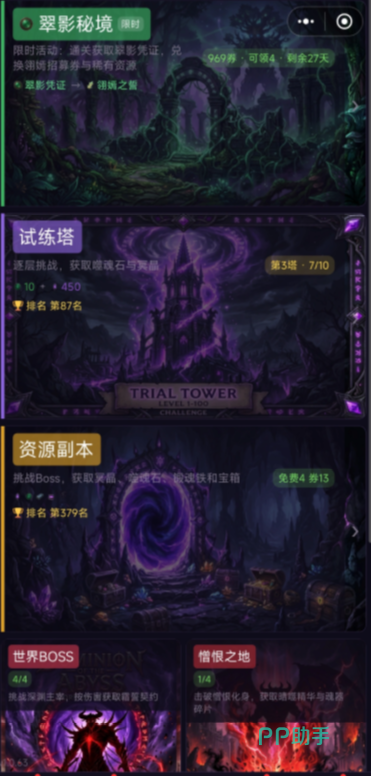 《暗影召唤师》的成长路径设计注重效率与策略性。英雄升级无需消耗大量金币或体力,主要依赖合成机制实现快速跃迁;装备系统同样支持合成强化,形成资源闭环。这种低门槛、高自由度的成长模型,使玩家能更专注于战术打磨与阵容迭代,在黑暗主题的世界观下,稳步提升战力,征服层层递进的挑战内容。