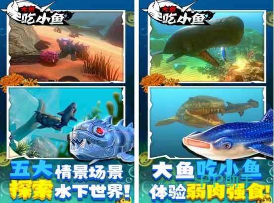 这款吞噬游戏是以大鱼吃小鱼这一种玩法为主的,你将控制里面巨大的鲨鱼,通过不断强劲的方式,来躲避人类的追捕。当然为了在海底生存下去,也要吃掉比自己体型小的鱼,除了给大家一种非常真实的海洋环境,也是比较好玩的模拟游戏,需要你在玩的过程中控制鲨鱼,使其游得越来越远,模拟了海底生物弱肉强食的生存法则。