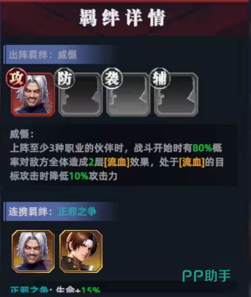 值得注意的是,卢卡尔的基础机制并不依赖特定队友即可生效。只要队伍中存在两名职业相同的伙伴,便可激活防御羁绊,增强生存能力。战斗初始阶段,他有80%概率对敌人施加流血状态,每次叠加两层,最多可叠加至10层。随着层数累积,持续伤害逐步提升,达到上限后将带来极为可观的DOT(持续伤害)输出。