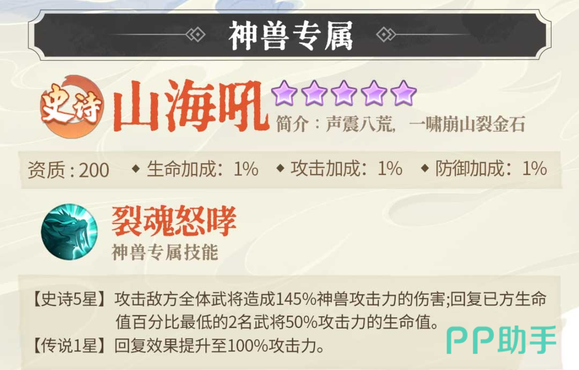 在《三国大冒险》这款融合卡牌与策略玩法的游戏中,神兽系统是一大亮点,而山海吼作为其中极具代表性的神兽之一,凭借其独特背景和强大战力备受玩家关注。它不仅拥有源自民间传说的文化底蕴,更在战场上展现出非凡的辅助与战斗能力,成为众多玩家追求的目标。