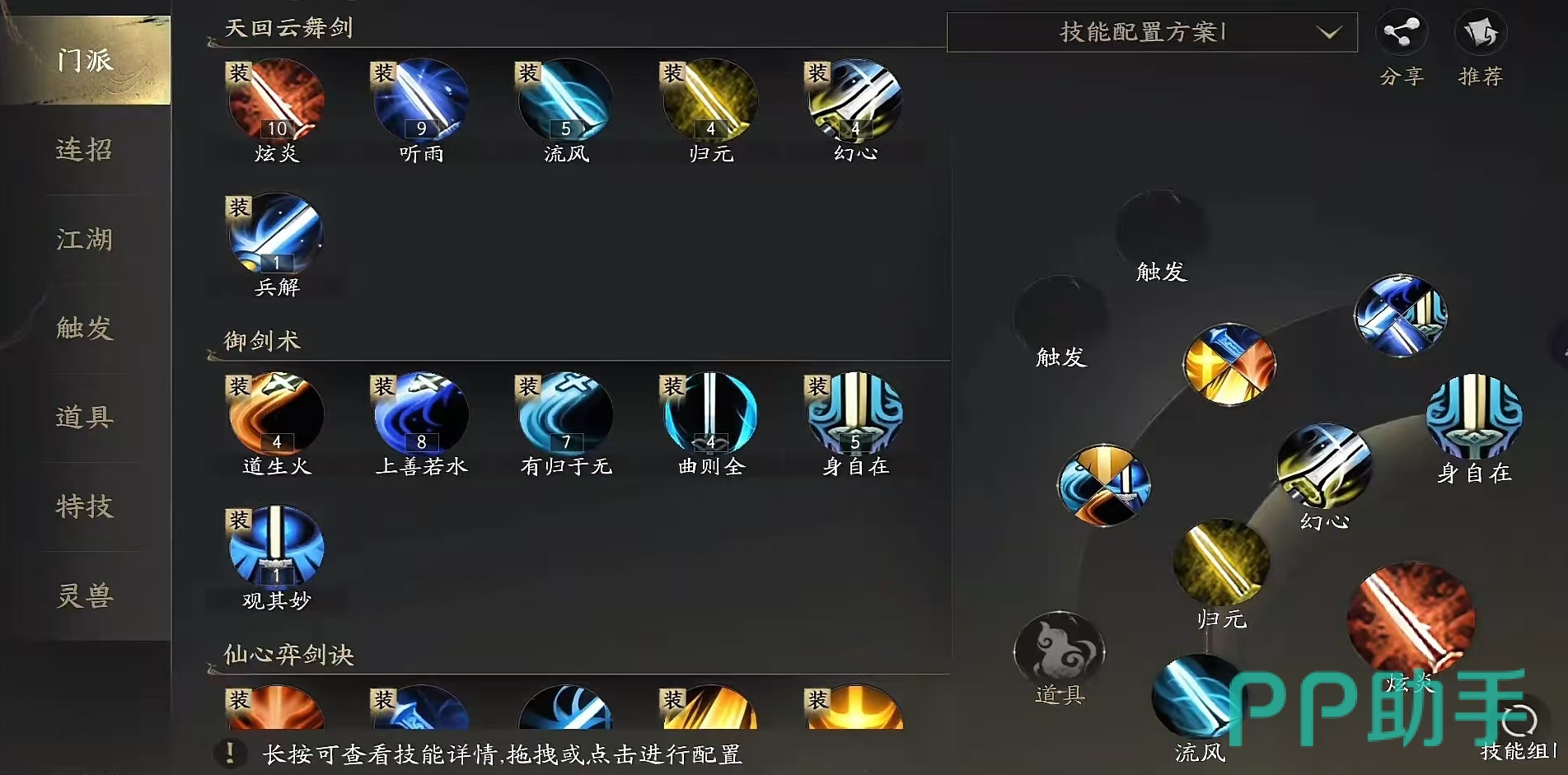云麓仙居定位远程法系输出,技能体系围绕火、水、风三系元素展开:火系主攻瞬发高额单体伤害;水系侧重持续减速与范围控场;风系则强化机动性与群体打断能力;另支持近战法师型加点,拓展近身缠斗可能性。太虚观融合符箓施法与灵宠召唤,宠物可承担嘲讽、解控、增益等战术职能,配合自身符文连锁效果,形成“人宠协同”的独特控场节奏,对操作预判与战场理解要求较高。