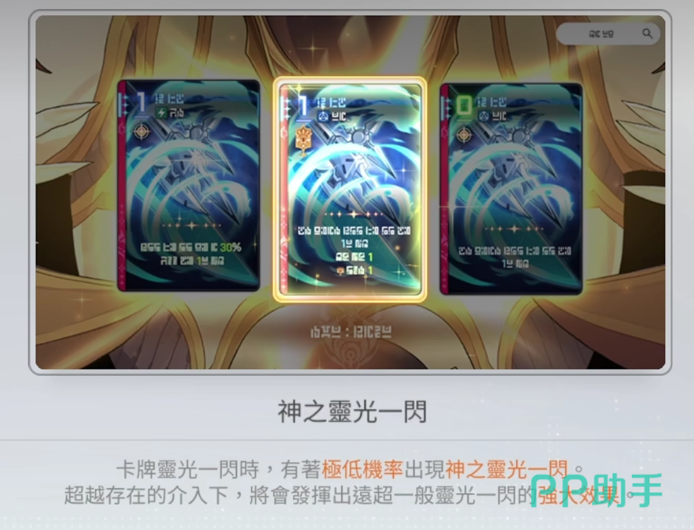 神之灵光一闪则是最高阶的触发效果,其触发条件极为苛刻——必须在已触发普通灵光一闪的基础上才可能进一步激活。成功触发后,玩家将获得一张超越常规强度的技能卡牌,带来远超普通强化的战略优势。值得注意的是,神之灵光一闪与普通灵光一闪互斥,同一张卡牌无法连续触发两种效果。此外,若玩家手牌已达上限,则即使满足条件也无法完成任何形式的灵光一闪,因此合理管理手牌空间至关重要。