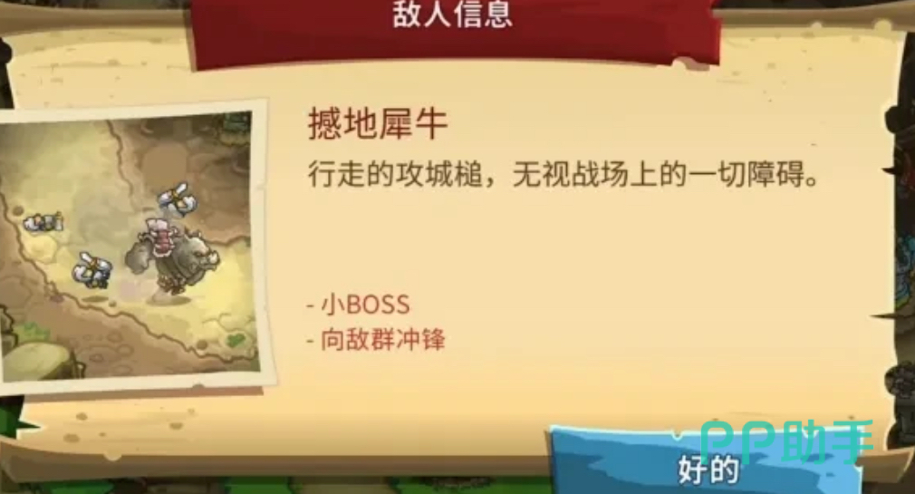 10、撼地犀牛:小型BOSS级单位,冲锋时无视障碍物,具有极强的突进能力和破坏力。一旦接近防线将迅速摧毁沿途建筑,必须提前部署控制技能或高伤塔拦截。