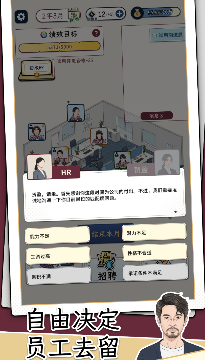 根据官方进度披露,HR模拟器已于2025年12月率先开启安卓端限量不删档测试,该测试版本即为初始体验版,所有参与玩家均可通过九游平台获取安装包并留存游戏进度。此次测试聚焦核心招聘、部门搭建与基础管理逻辑,是玩家接触本作最早的公开渠道。