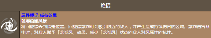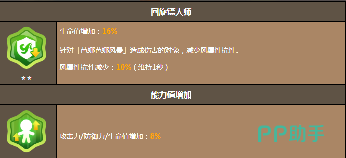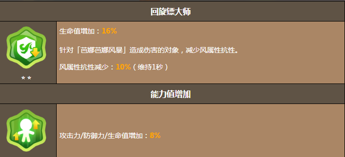 作为风系阵容的核心驱动者,大蕉饼干的特殊技能“大蕉回旋镖”可同时投掷两枚高速飞镖,除造成高额风属性伤害外,还会为目标施加“龙卷风标记”,降低其风抗,为全队后续技能提供稳定的减抗支持。终极技能“芭娜芭娜风暴”则具备强控+范围持续伤害双重效果:回旋镖落地引爆后生成引力场,强制聚拢范围内所有敌人,并在持续区域内造成多段风伤,极大提升团战AOE效率与命中稳定性。