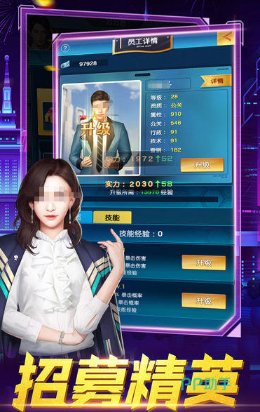 从最初的小摊贩开始,逐步发展出属于自己的公司,通过招募精英扩大业务范围,要学会投资各种项目。随着时间推移将获得更多的财富,小伙伴们将尽享奢华生活,比如豪车豪宅应有尽有体验,从平民到掌控世界的传奇之旅。多样化特色玩法除了可以投资之外,还能够与女秘书进行互动,提高双方的亲密度。