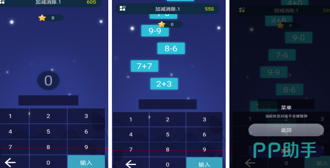在这款手游里,大家将在温馨的星夜背景下学习加减。游戏里会为大家准备一些简单的加减运算题目,然后大家需要点击游戏里的键盘给出问题的答案就算过关。并且游戏里还为大家限定了时间,让玩家们体验烧脑的刺激感觉。喜欢挑战的小伙伴们一定不要错过哦!
