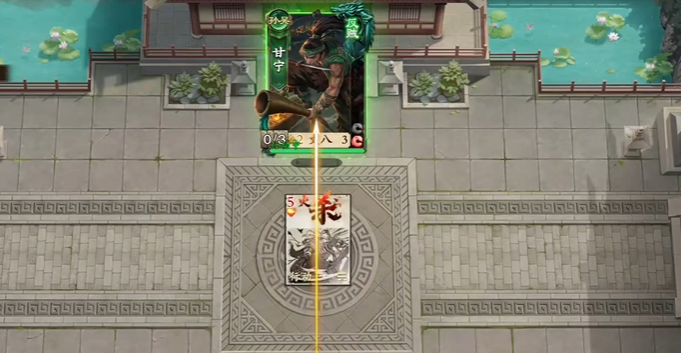 第49关:起手发动火烧连营技能,再对甘宁使用过河拆桥,使其失去所有手牌。此时关羽处于一血且无手牌状态。接着对甘宁使用顺手牵羊,夺取其装备或关键牌后立即对其使用杀牌,完成击杀取得胜利。