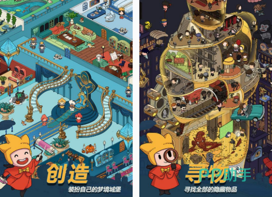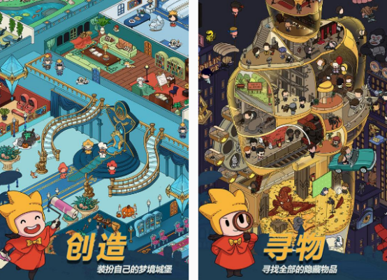 此休闲游戏同样也是以梦境,为大家所设置的,融入了寻物解谜这样的玩法,还有手绘插画风格的画面,有着极高的互动性。每个玩家在进入了梦境的世界以后,到底如何解开游戏所设置的谜题,对于玩家来说也会有很多的挑战,在画面风格上融入了很多的元素。既可利用创造力,装扮属于自己的梦境城堡,还可利用所找到的隐秘藏品,来挑战自我。