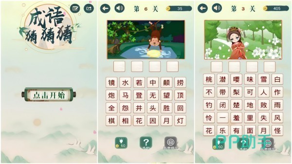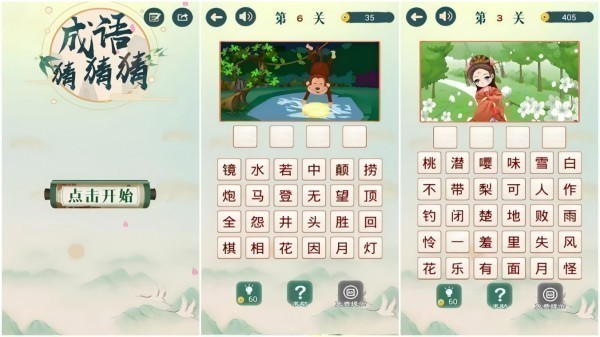 游戏以有趣益智的猜成语为主要玩法,不仅充满了趣味性,同时也能用来提升增强成语的储备,因此也非常适合学生玩家体验。《快速看图猜成语》非常专业的配置了与成语意义相关的提示图片,供大家展开头脑风暴的想象力猜测,同时下方的成语部分字提示以及汉字选择栏,也能帮助大家更好的完成成语填空闯关。