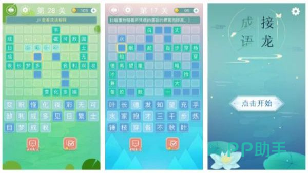 这是一款有趣的成语填空休闲小游戏,其中为大家提供了各种难易程度的数百个关卡,无论男女老少玩家都能在此快乐休闲玩耍、寓教于乐。《成语接龙》的每个关卡内,设有纵横交错的方格,其中为大家提供了各式各样的成语,但是它们存在一定的空缺处,需要大家从下方的三行文字中,选择正确的填入。