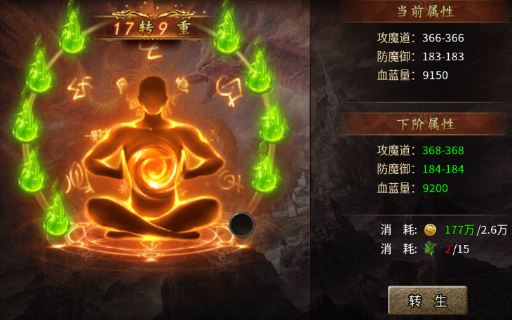 挂机不仅是升级手段,更是资源积累的关键。尤其在转生系统中,挂机产出的蛮荒币与龙魂草是提升转生阶数的基础材料。转生并非传统等级延伸,而是一套独立成长体系:每提升一重转生,角色基础属性获得显著强化。其中,攻魔属性带来的蓝量增幅尤为突出;但需注意,高阶转生消耗资源呈指数级增长,因此建议新手优先清理前期地图,稳定获取龙魂草等入门道具,为后续转生铺平道路。