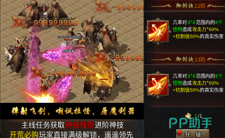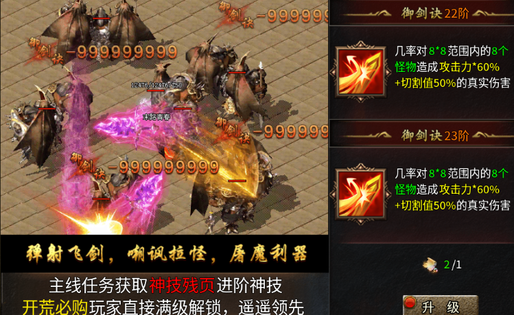 技能升级采用独立加点机制,不可通过通用经验自动提升。核心材料为神技残页,该道具广泛分布于挂机地图及常规副本中,获取门槛较低。不同职业拥有专属核心技能,例如战士职业的“御剑诀”,其初始伤害有限,但每升一级均可获得固定百分比攻击加成。随着残页持续投入,该技能在实战中的真实输出增幅极为可观。主线任务亦会稳定发放进阶材料,保障新手期技能成长节奏。