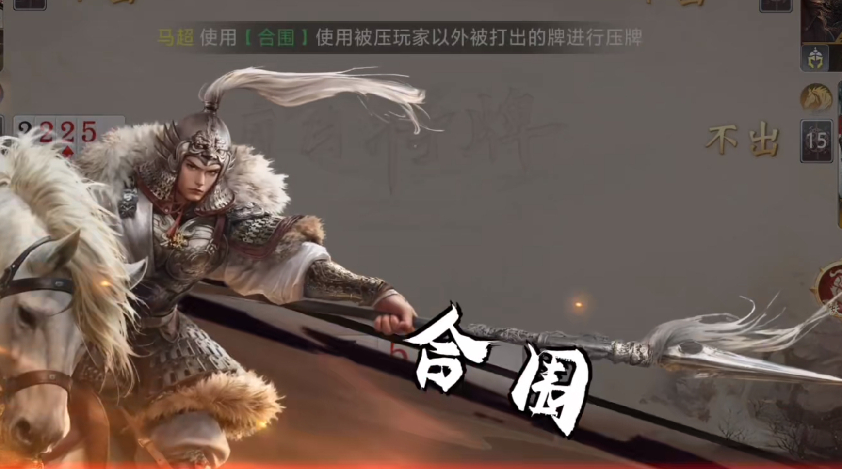 马超为高阶T1武将,售价1888金饼,需通过商城购买获取。其机制具有双重战略价值:一方面可将自身全部手牌设为“不可被夺取状态”,有效反制吕蒙类夺牌型角色;另一方面支持跨玩家组牌——压制1张牌时可从他人手牌中抽取2张,压制2张牌时则可抽取1张。该“压一拿二/压二拿一”的动态交互规则,使其兼具进攻主动性与防守稳定性,成为当前版本中泛用性最强的全能型武将之一。