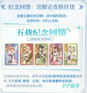 而作为五周年的特别回馈,玩家们可以通过参与活动,获得不少丰厚的奖励。例如五载纪念回馈和五载战令,活跃度高的玩家将能够获得包括限定皮肤、养成资源等一系列超值奖励。如此丰富的福利,简直是为大家的付出与支持送上了最实在的回报!