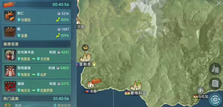 如果你选择跑商,那么前期一定要掌握黄金航线。黄金航线不仅是最稳定的盈利来源,每条航线满足条件后还能给你绑定钻石奖励。跑商的过程中,不光要看商品的价格波动,还得时刻留意世界频道和国家频道的消息,其他玩家的推荐可以给你提供很大的帮助。