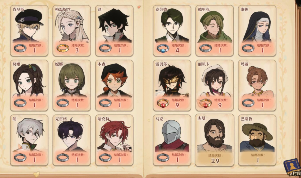 情感结局则围绕好感度系统展开。玩家需选定一名可攻略角色,将其好感度提升至140点以上,并共同经历三个专属事件,完成后将获得该角色的定情信物,进而触发结婚结局。值得注意的是,若好感度未达140点,则无法开启婚姻剧情。玩家可根据个人偏好自由选择最终伴侣,实现个性化的情感归宿。