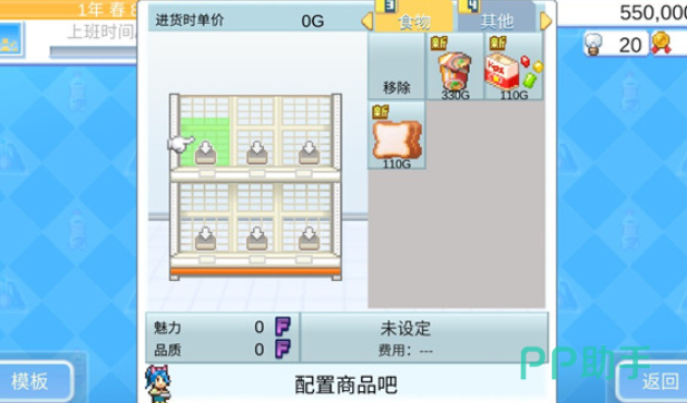 在游戏中玩家还可以根据自己的审美来搭配店面的装修,通过货架、地板和柜台的搭配来提升店面的时尚度,时尚的店面能够吸引到的客户越多,干净整洁的环境也能够吸引更多的回头客,游戏中还有一项内容就是制定特色的商品,一个好的特色商品能够给店铺带来更大的经营效益,游戏风格非常的新颖,通过像素的方式将一个便利店完整的展现在玩家的面前。