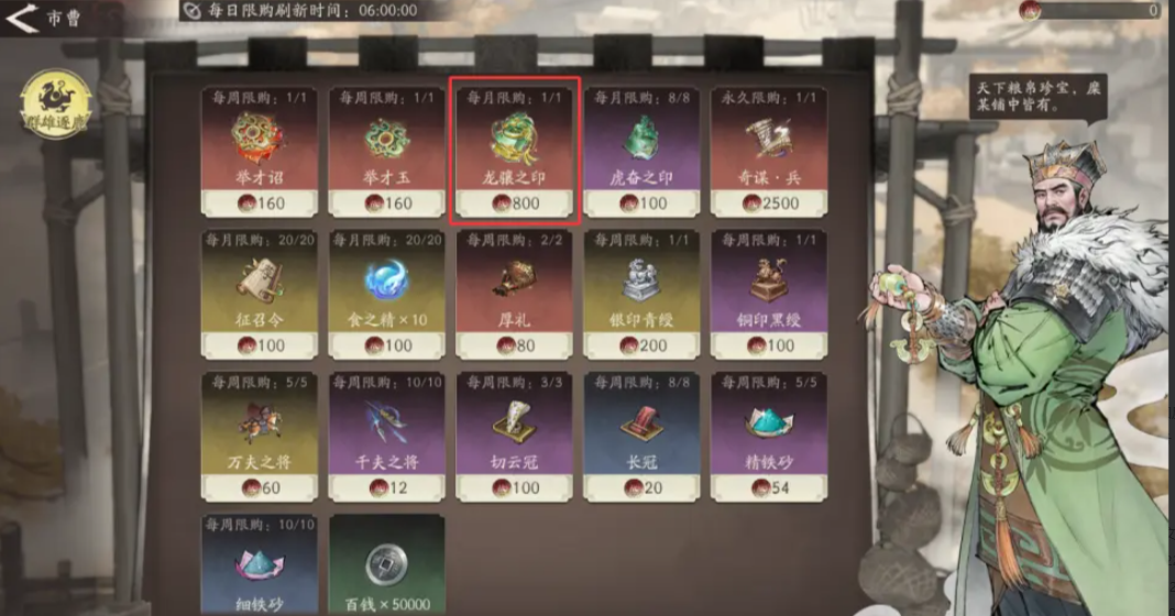 对于需要长期稳定获取的玩家,周期性途径更为实用。可在“群雄逐鹿”商店中使用金币兑换龙骧之印,该商店每月刷新一次商品列表,确保玩家有持续获取的机会。同时,“活动卡池商店”也会不定期上架该道具,消耗对应代币即可兑换,具体更新频率与当前开放的卡池活动同步。