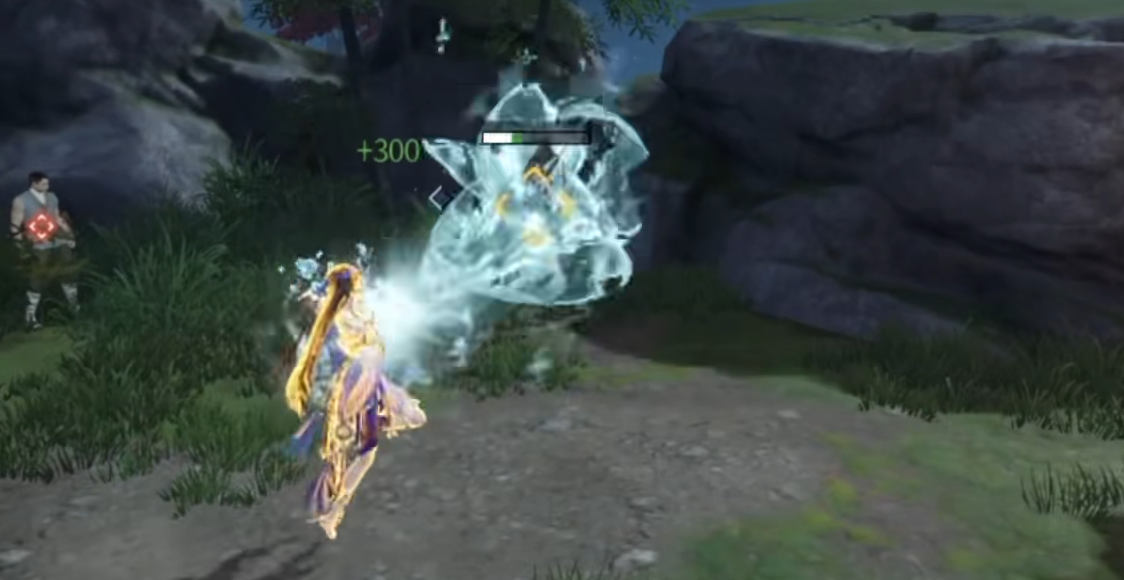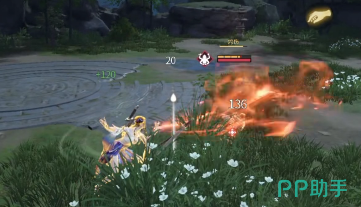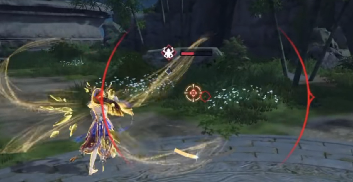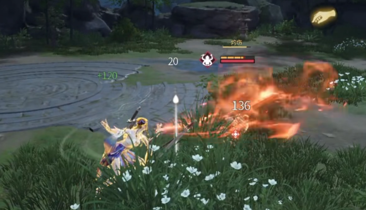 二技能“傩舞·振”为突进型控制技:向前疾冲,可强制打断敌方普通攻击与部分蓄力招式;冲刺全程具备武器格挡能力。若在突进中承受蓝霸体攻击,则立即触发处决判定,对目标附加持续灼伤效果,同时恢复自身少量体力。灼伤按当前最大体力百分比持续扣减,并使目标体力回复效率降低50%。