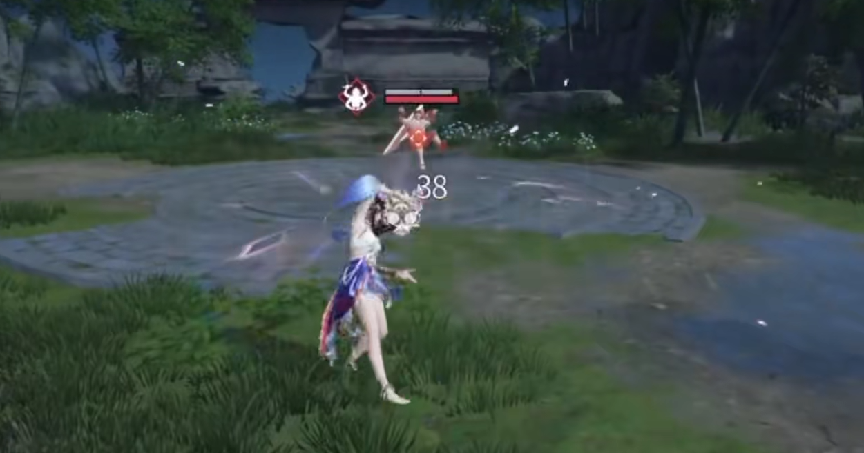 一技能“傩舞”具备位移与反制双重特性:施放时向后轻盈跃退,并在原地生成一枚傩面;傩面延迟爆炸,对范围内敌人造成击飞效果。特别机制在于——若该技能释放过程中被振刀命中并触发白霸体判定,本次所受伤害将被暂存,并于下次释放“傩舞”时全额返还至目标,形成高风险高回报的博弈链。