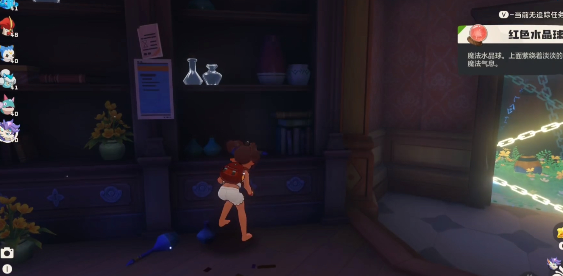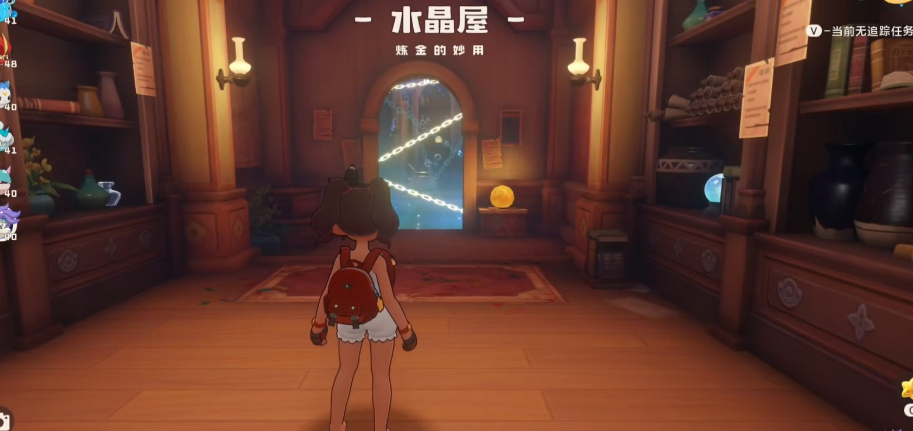 成功拾取全部六颗水晶球后,便可进入秘境提交任务。需要注意的是,任务需按阶段交付指定颜色的水晶球。第一个房间需要黄色水晶球,可直接从房间内的柜子上取得。第二个房间要求紫色与绿色水晶球,若缺少对应颜色,可通过炼金壶进行合成——红色加蓝色生成紫色,黄色加蓝色合成绿色。推荐优先搜集秘境内所有基础色水晶球,再根据需求合成,避免材料浪费。