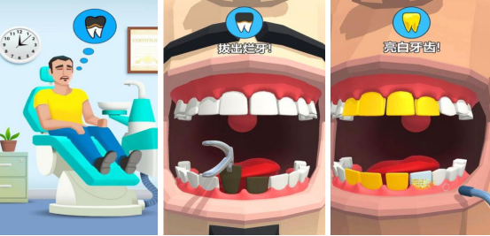 简约的画面再搭配上极易简单的上手操作方式,适合所有年龄的人群来体验,您在这里将要化身成为一名优秀的牙医,每天就是需要为自己的顾客治疗各种牙齿疾病,比如修补蛀牙以及拔牙等。游戏还将牙科中所有的医疗设备展现得非常全面,玩家可结合顾客的牙齿情况,巧妙选择不同的设备完成操作。