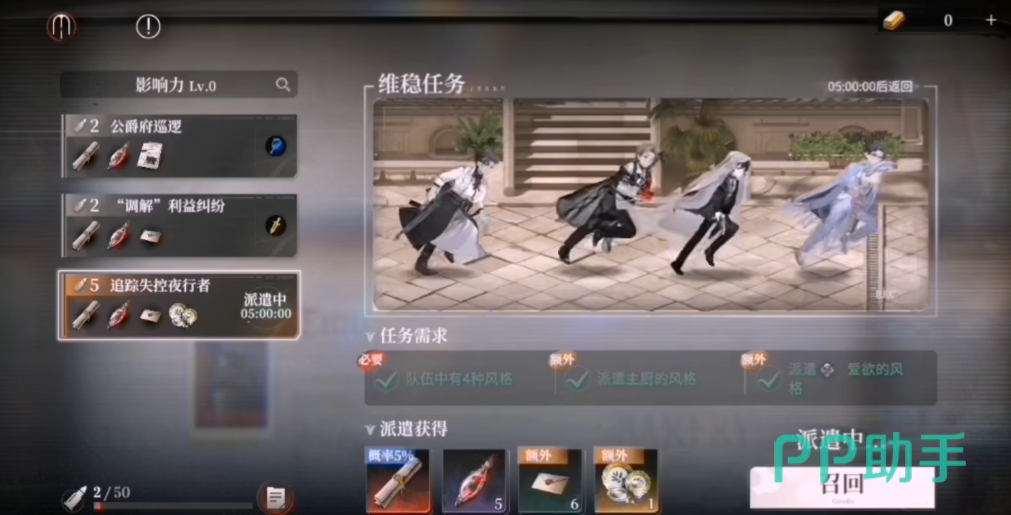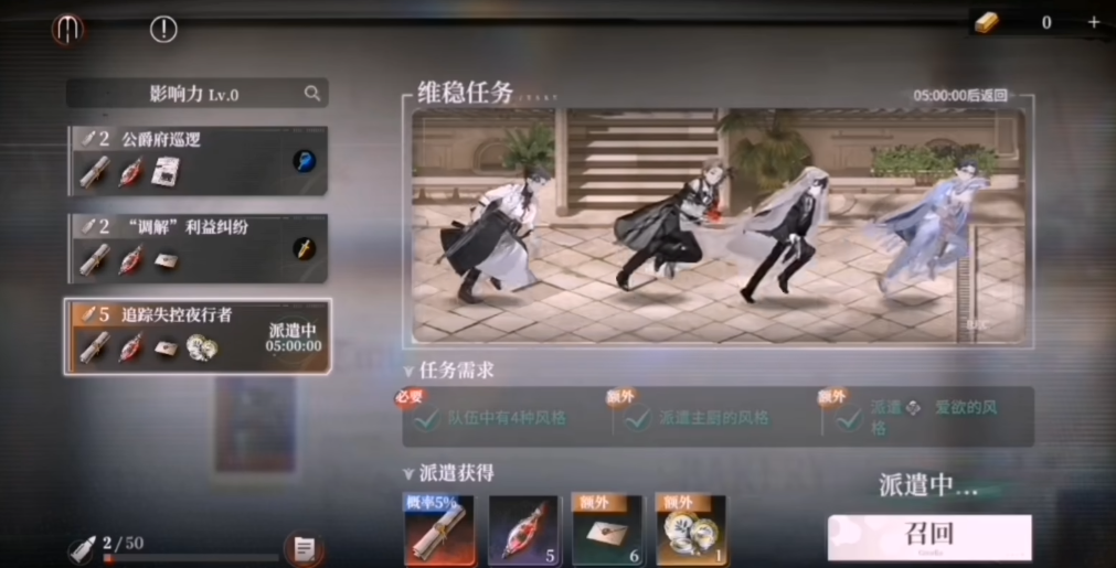 派遣角色的选择具有策略性——不同任务对角色的职业、属性、技能倾向存在匹配提示,合理搭配可提升成功率与资源产出效率。值得注意的是,仅限未处于当前出战阵容中的角色参与派遣,确保养成资源分配与战力构建形成良性循环。