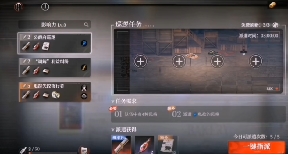 该系统操作简洁:玩家只需从已拥有且未编入主力阵容的角色中,选取符合任务属性要求的干员,指派其执行指定派遣任务。相比主线关卡或高难度副本,派遣任务无需实时操作,全程自动完成,耗时由任务类型决定,并在界面中明确标注倒计时与完成条件。