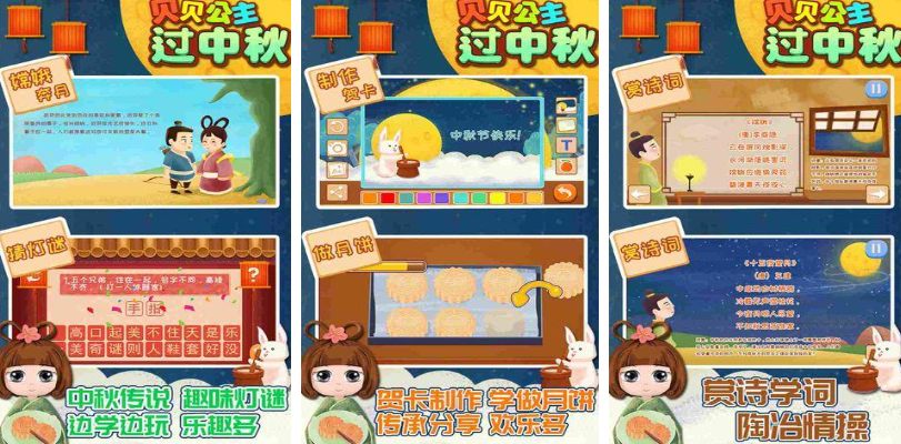 贝贝公主过中秋游戏中,以贝贝公主为主角,设定了一个充满奇幻色彩的故事背景,在中秋佳节这个特殊时刻,贝贝公主意外穿越到古代宫廷,为了能顺利举办一场盛大的中秋庆典,玩家需要操控贝贝公主开启一系列冒险,在这个过程中孩子们仿佛跟随贝贝公主一同穿越时空,走进古代宫廷生活,沉浸式感受中秋氛围。